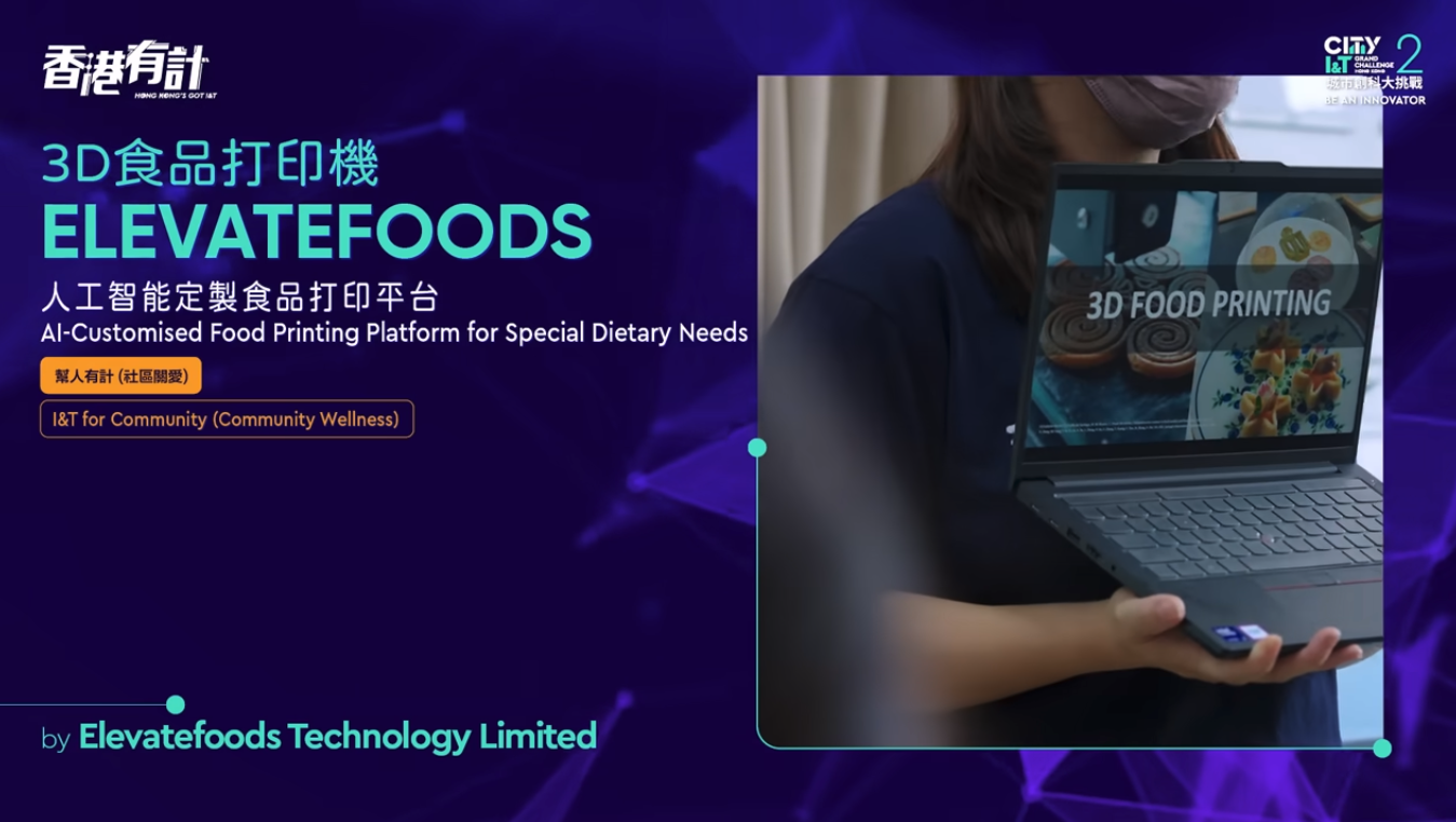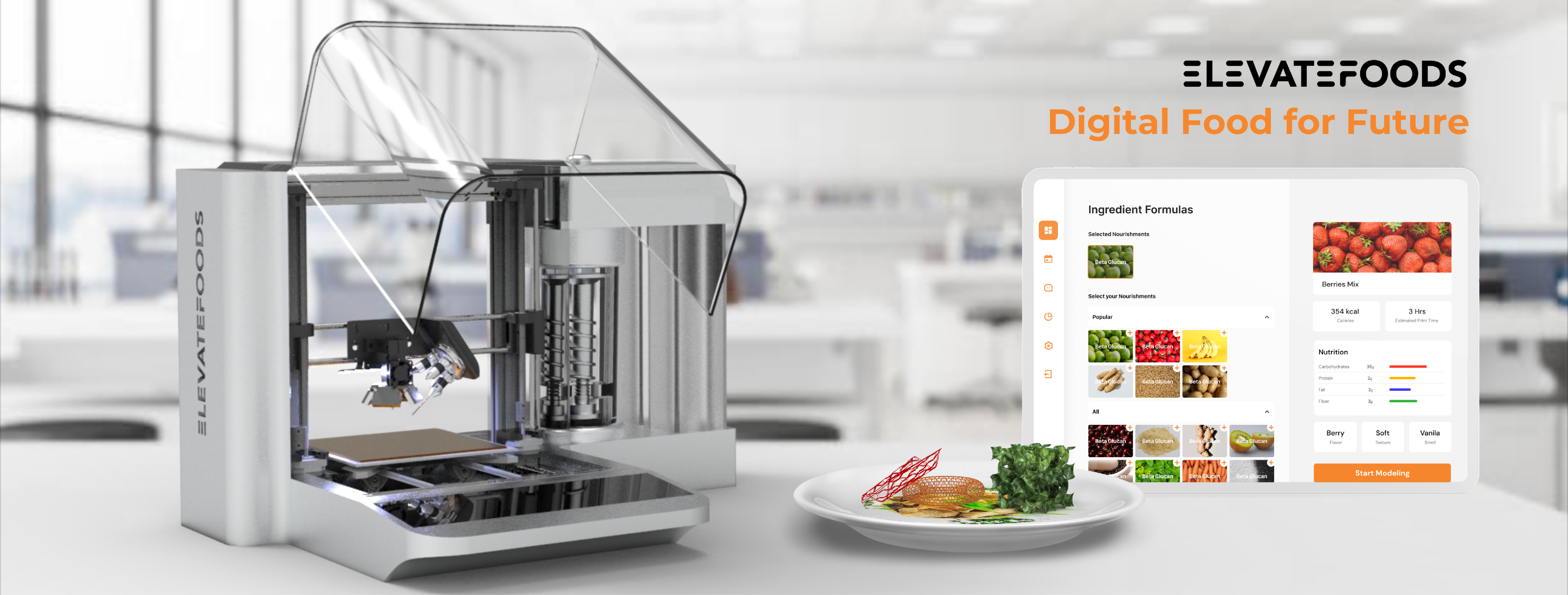 Elevatefoods pioneers personalized nutrition and digitally optimized food through smart 3D printing, with an aim to revolutionize personalized food preparation and cooking methods, hence delivering ready-to-consume edible products with unique design profiles including textural, sensory and nutritious profiles. Targeting the F&B and clinical nutrition industries, with users including seniors with swallowing disorders, patients with special dietary needs, and more. Key technologies include an AI-powered food design platform for customized food creations and a rapid, precise food printing system.