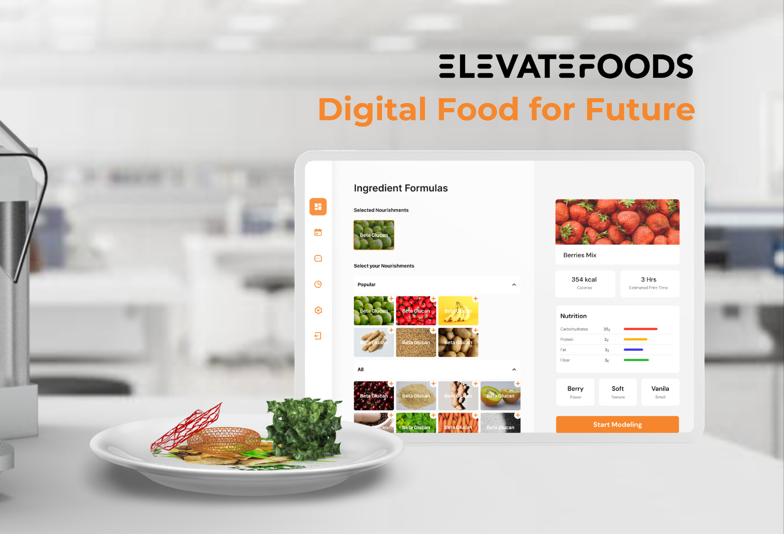 Elevatefoods pioneers personalized nutrition and digitally optimized food with smart 3D printing. We aim to revolutionize personalized food preparation and cooking methods, targeting F&B and clinical nutrition industries, including seniors with swallowing disorders, patients with special dietary needs and more.