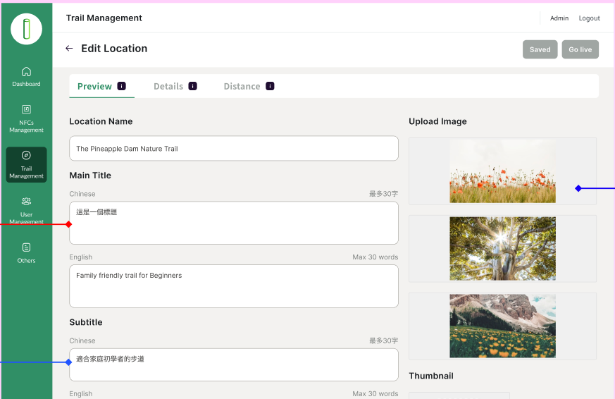 建⽴精简 CMS ,⽀援步道内容、 NFC 标签与媒体管理,完善后 端基础