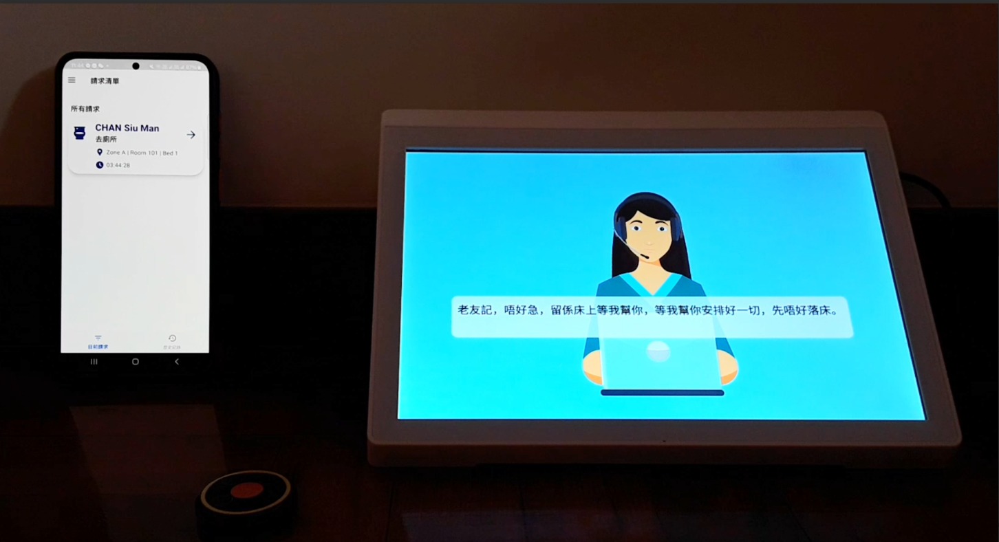 將於一間本港安老院舍進行首次用戶測試。此外,已把離床監測感應器整合至系統中,當長者試圖獨自離床時,系統會即時通知護理員,以預防跌倒並提升安全性。