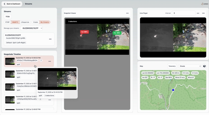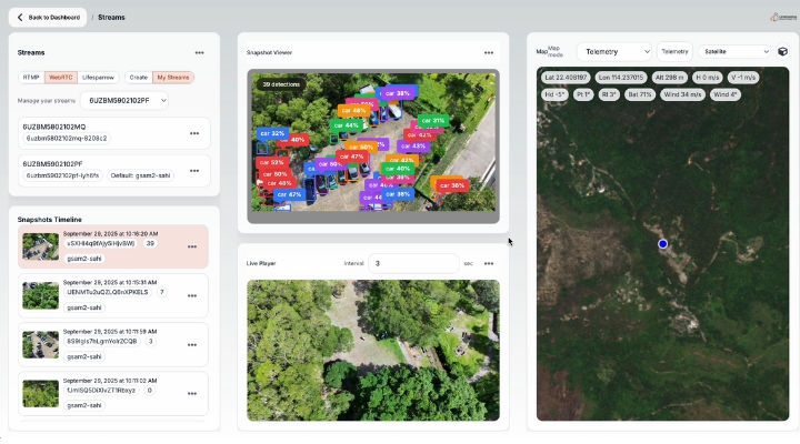 首個里程碑實現熱成像無人機影片串流,為AI檢測系統提供即時數據訓練。結合直觀的操作介面,精準識別行山者、山火及露營地,為郊野公園監測帶來革命性突破。